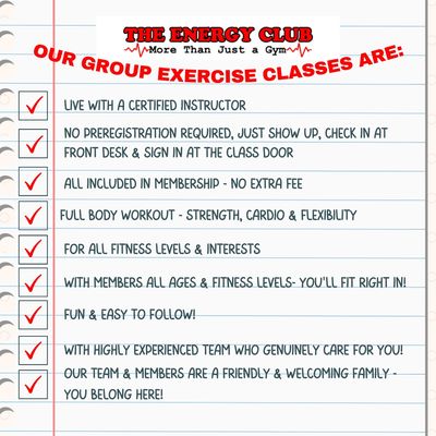 Group Exercise Classes including